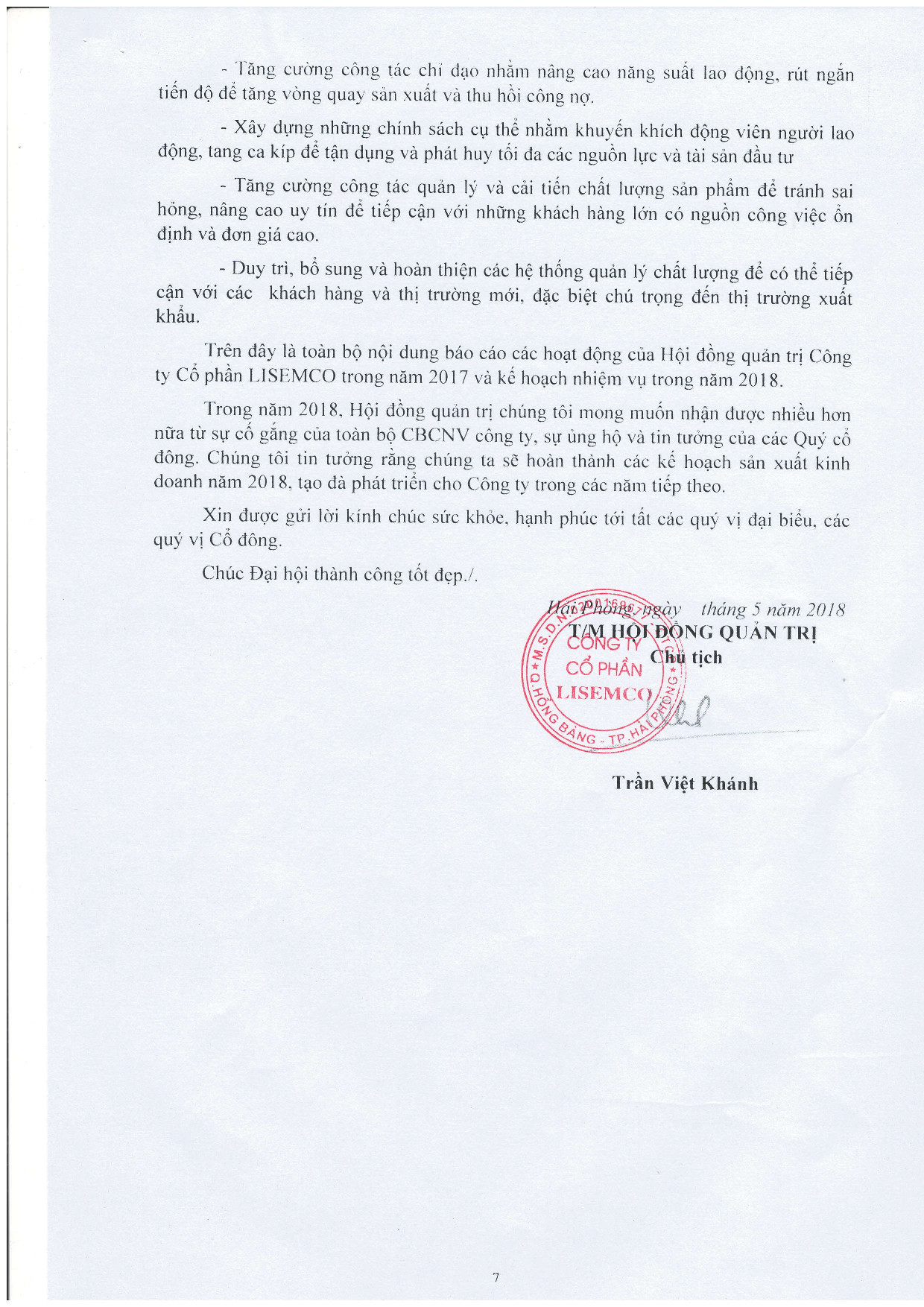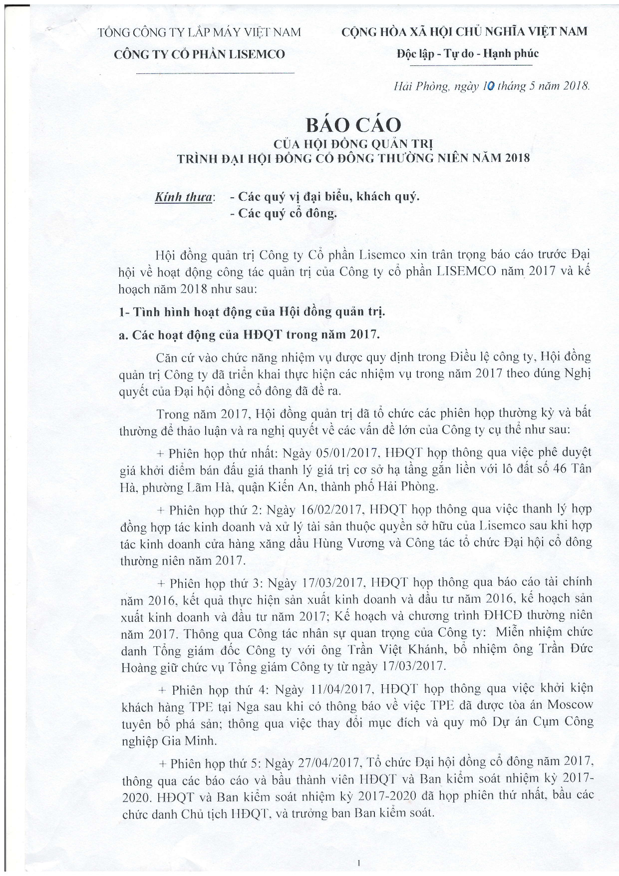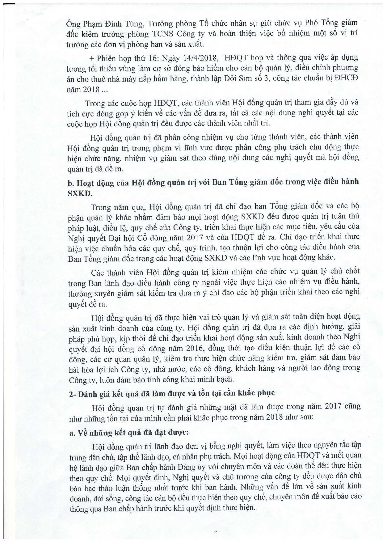Báo cáo của HĐQT trình ĐHCĐ thường niên năm 2018