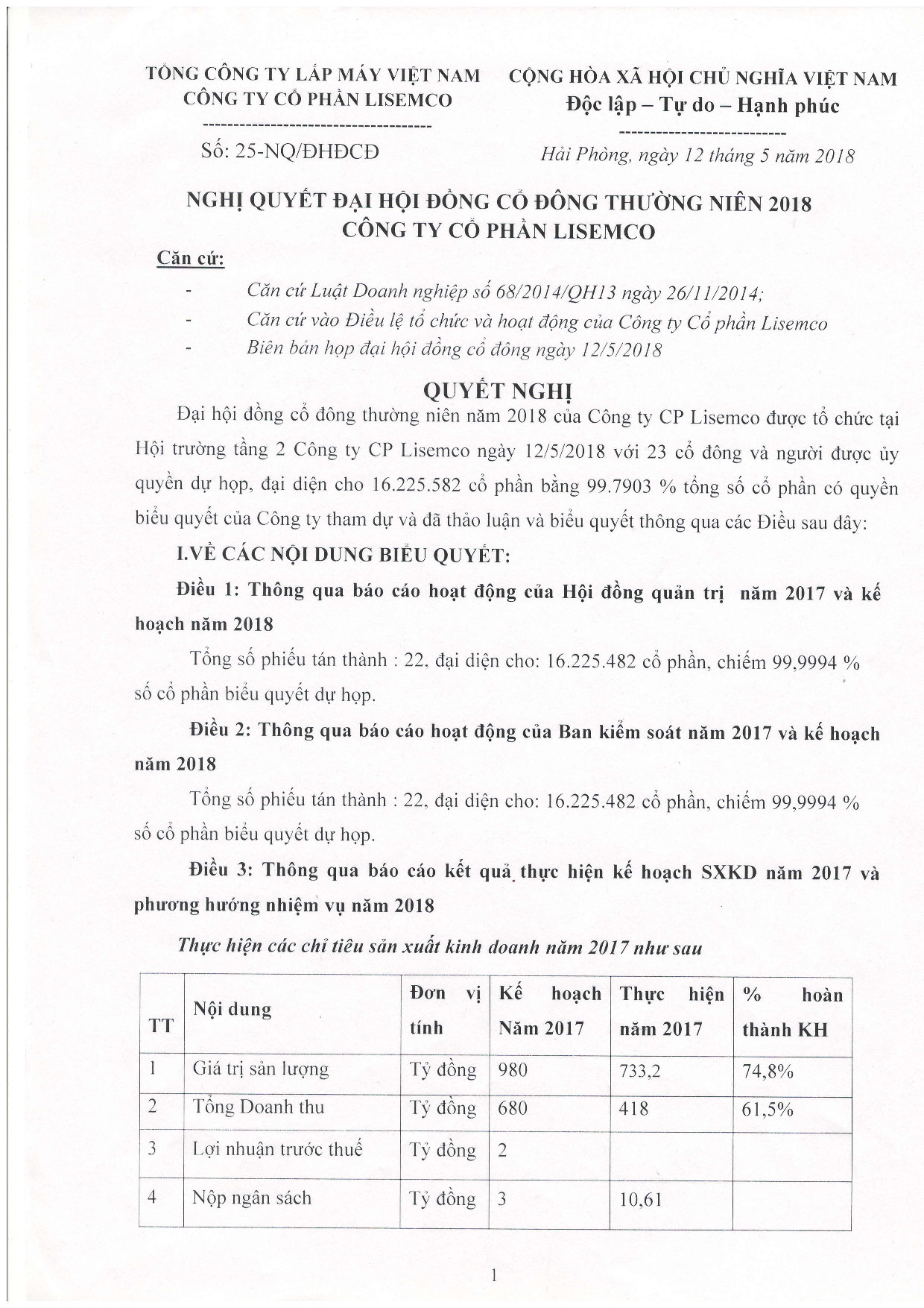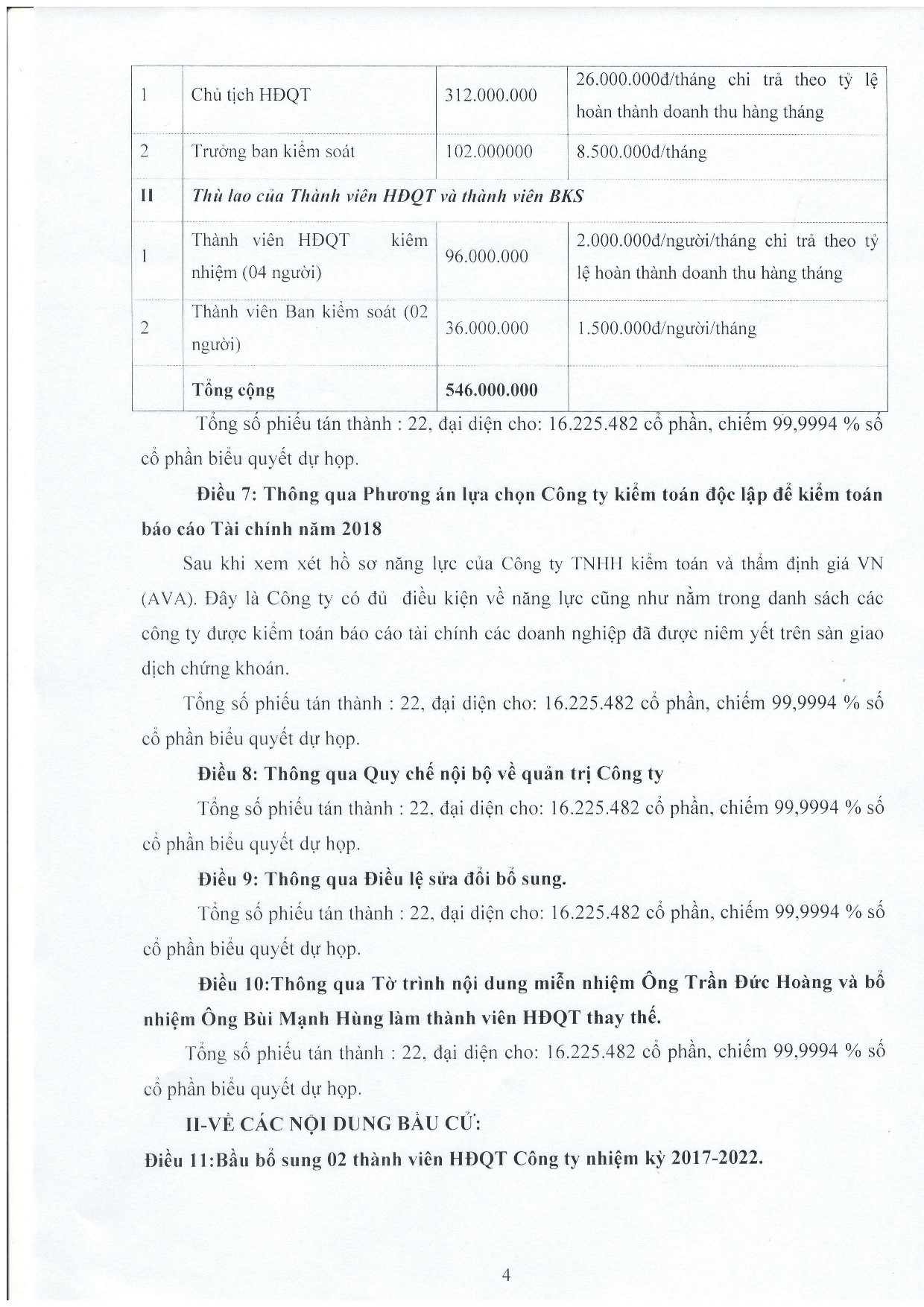 Nghị quyết Đại hội đồng cổ đông thường niên 2018