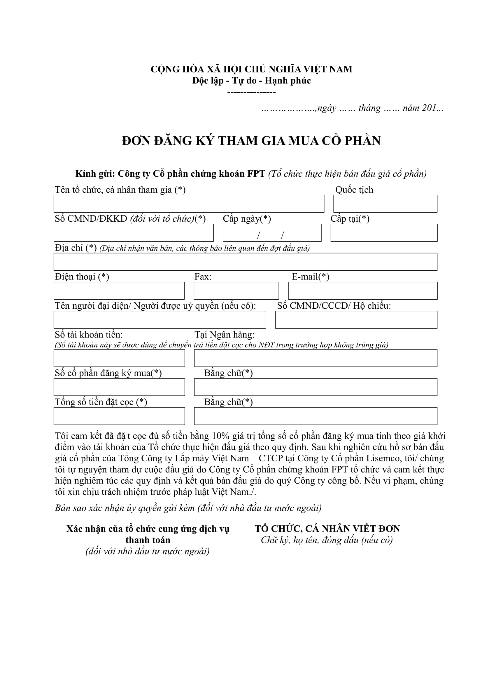 Mẫu đơn đăng ký đấu giá